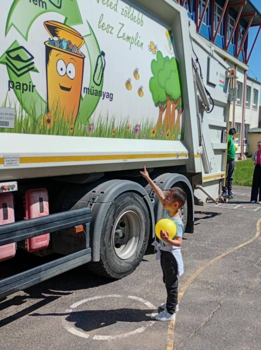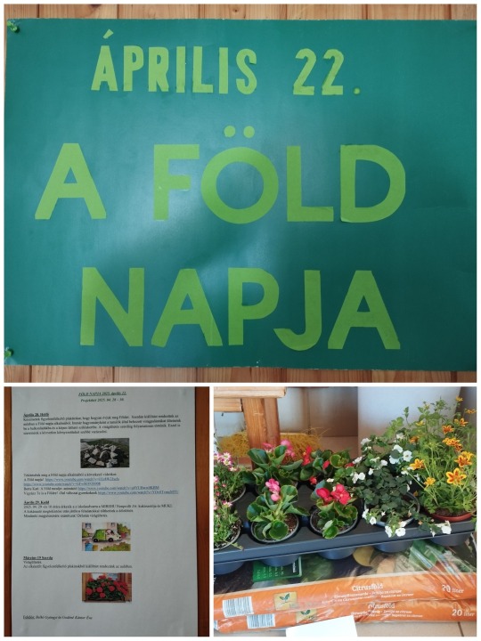 A Föld napja alkalmából immár hagyományként hétfőn virágot ültettünk az iskola udvaron. Kedden 10 órára megérkezett a MIREHU Nonprofit Zrt. kukásautója és MUKI a gyerekek nagy örömére. Szerdán, az elkészült figyelemfelkeltő plakátokból kiállítást rendeztünk az aulában.