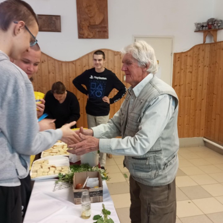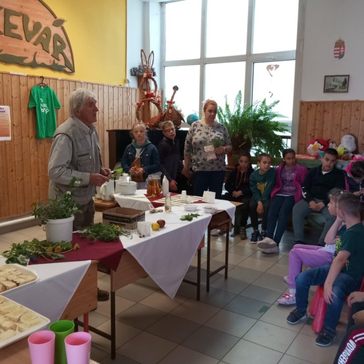 Zárásként iskolánk egyik tanulójának nagypapája nagyon érdekes, sok új ismeretet nyújtó előadást tartott a gyógynövények sokrétű felhasználhatóságáról. Gyógyteát kóstolhattunk fenyőrügy szörppel, melyet mindenki szívesen kortyolgatott.