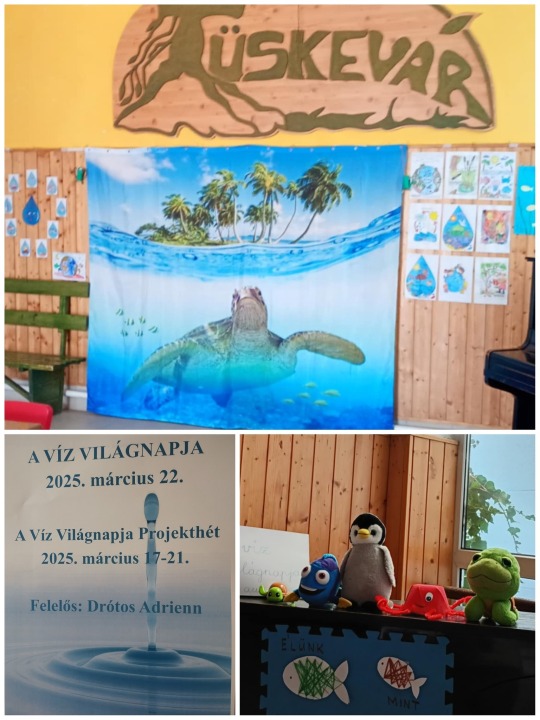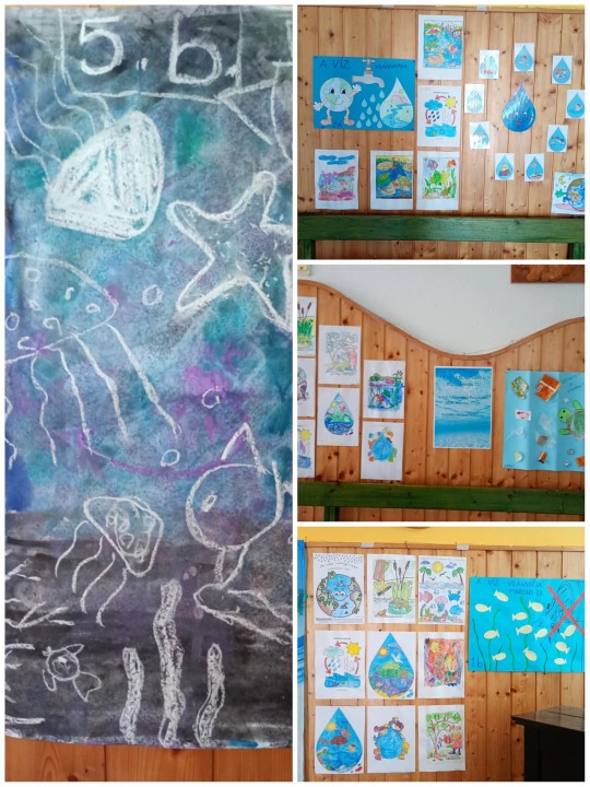 Ezen a héten ebben a témában minden nap különböző tevékenységet végeztek a gyerekek. Készítettek figyelemfelkeltő plakátokat, a megnézett videókkal, feladatokkal ismereteiket bővítették. Csónak, halacska úsztatás és pecázás volt az aulában.