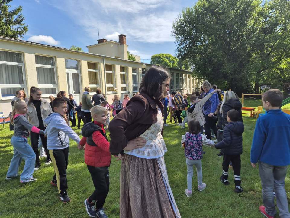 Közösen táncoltak az iskolások és az óvodások az udvaron.